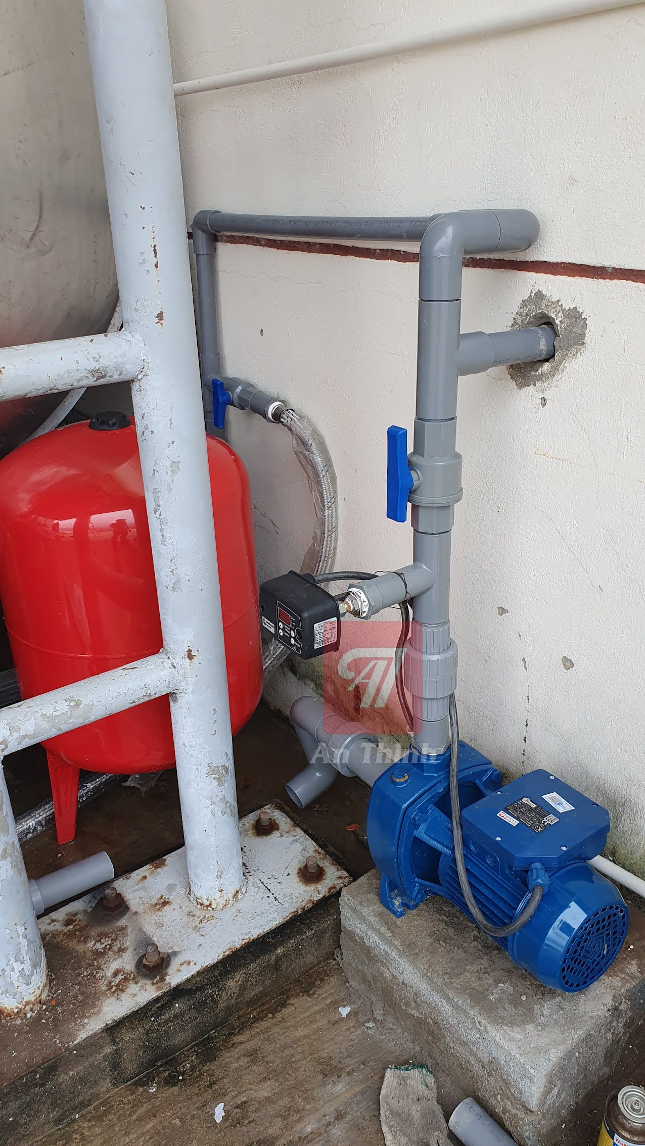 Tăng áp không cần biến tần với bơm Pentax Italy 3Hp và Bộ tăng áp điện tử bảo vệ bơm chạy khô, quá tải Switchmatic từ Tây Ban Nha chính hãng.