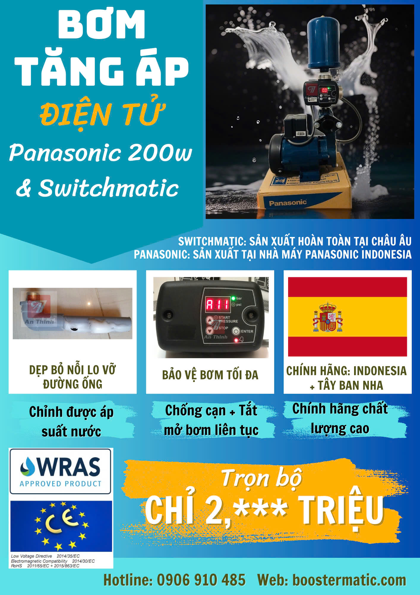 Mọi nhu cầu liên quan đến Bơm tăng áp điện tử Panasonic 200w, Quý khách vui lòng liên hệ: